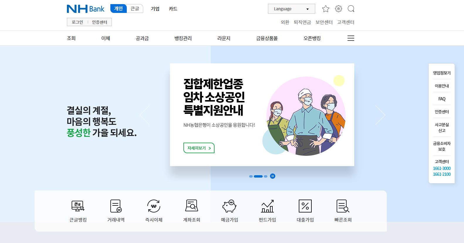 - 반드시 최초에는 농협 지점을 방문하셔서 '인터넷뱅킹 신청' 서류를 작성 하셔야 합니다.