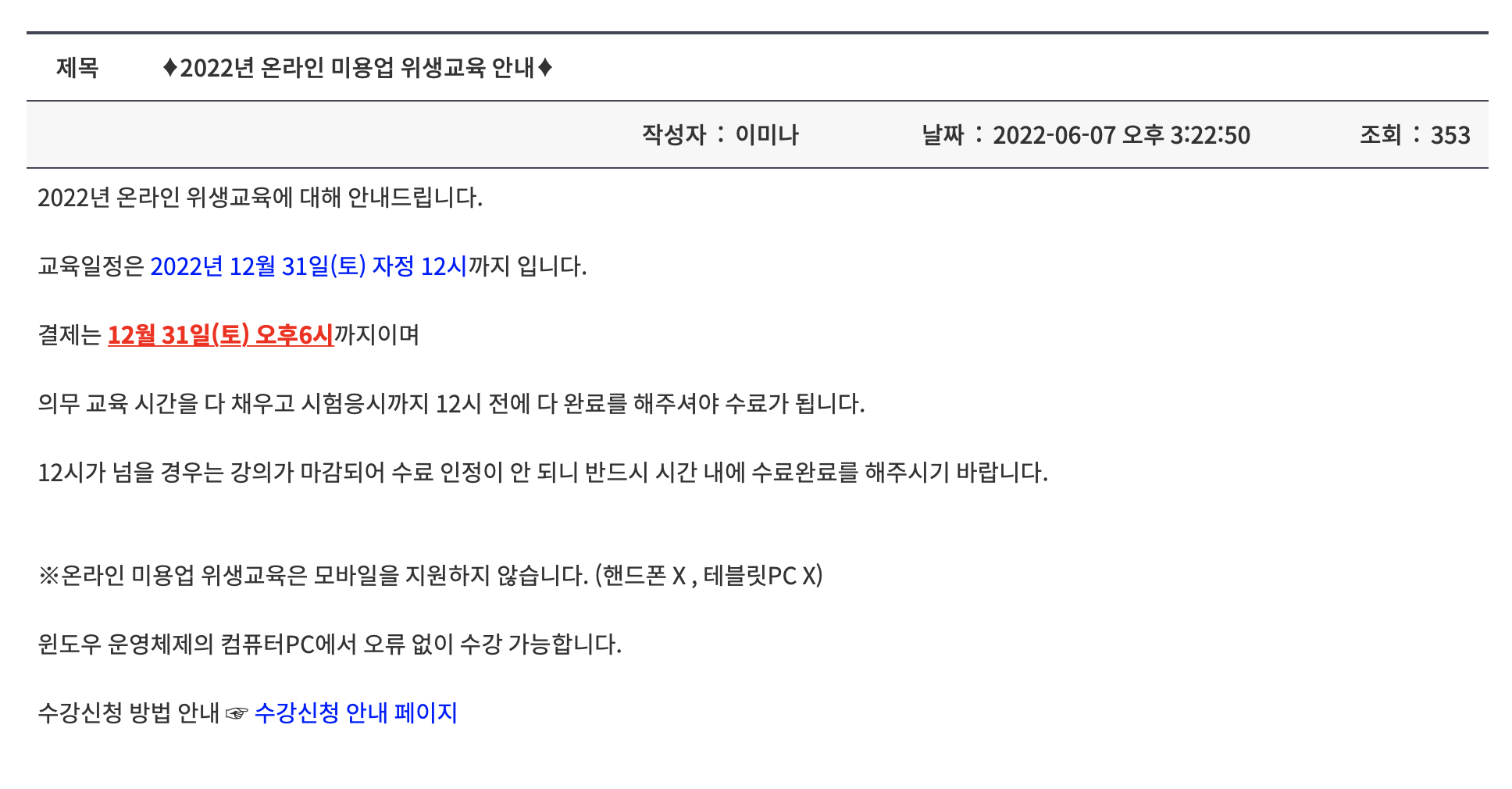 교육기간 2022년 12월 31일 토요일 자정 12시
