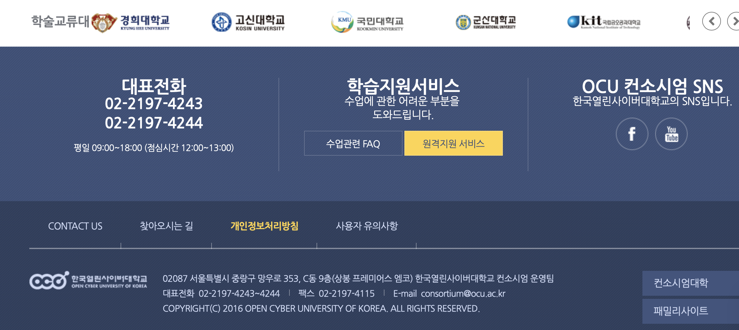 - 02087 서울특별시 중랑구 망우로 353, C동 9층(상봉 프레미어스 엠코) 한국열린사이버대학교 컨소시엄 운영팀