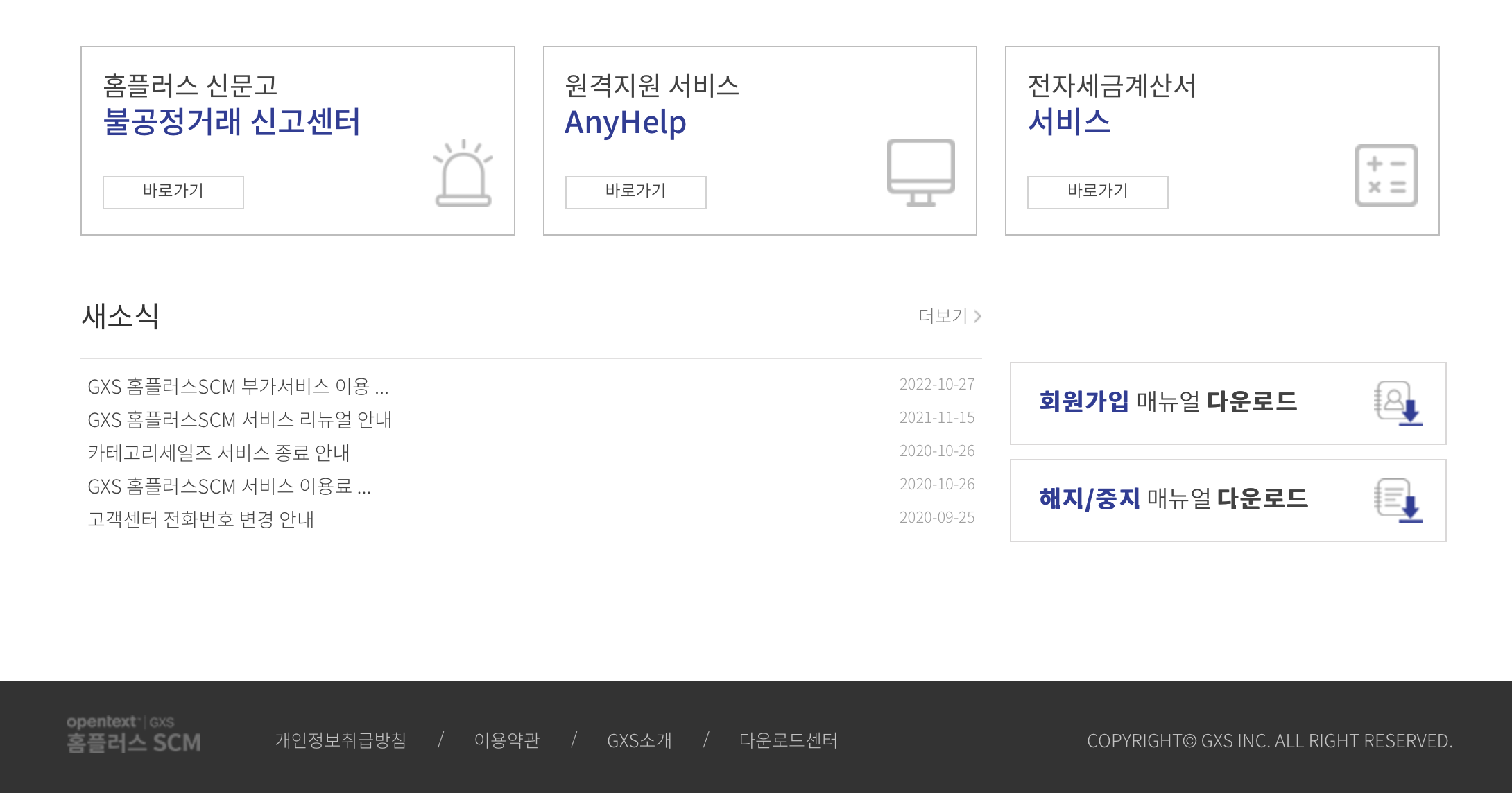 홈플러스와 협력업체 간 SCM 업무를 위해GXS에서 제공하는 SCM(공급망관리) 서비스입니다.