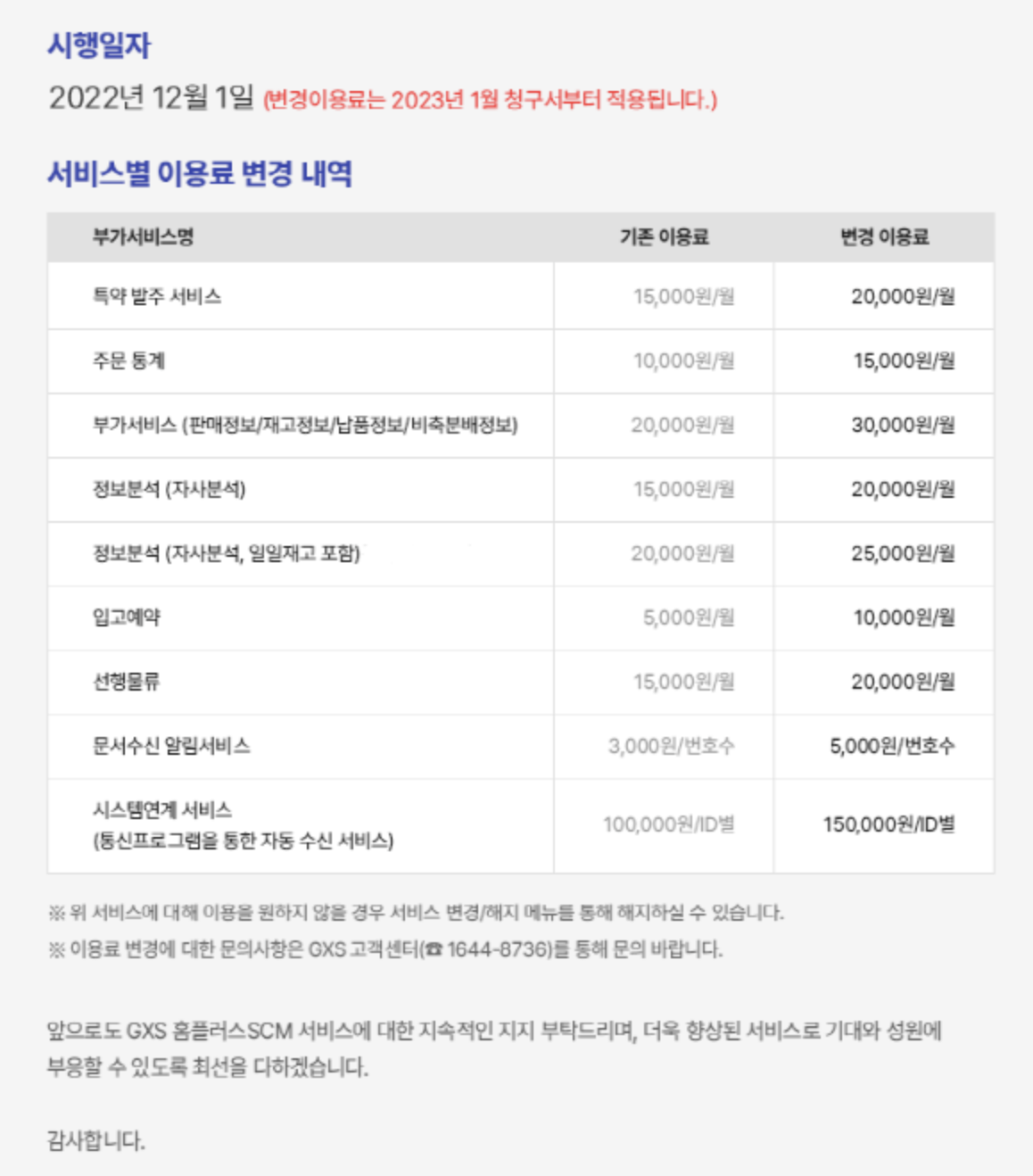 2022년 12월 1일 부터 서비스별 이용료가 변경되었습니다.